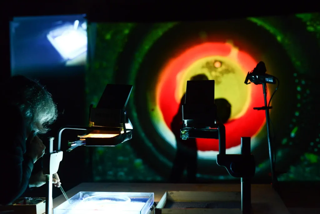 Les imatges projectades a través de la llum creen una atmosfera sensible, elegant, de gran riquesa visual, i d’una intensa seducció que ens transporta al món simbòlic.
