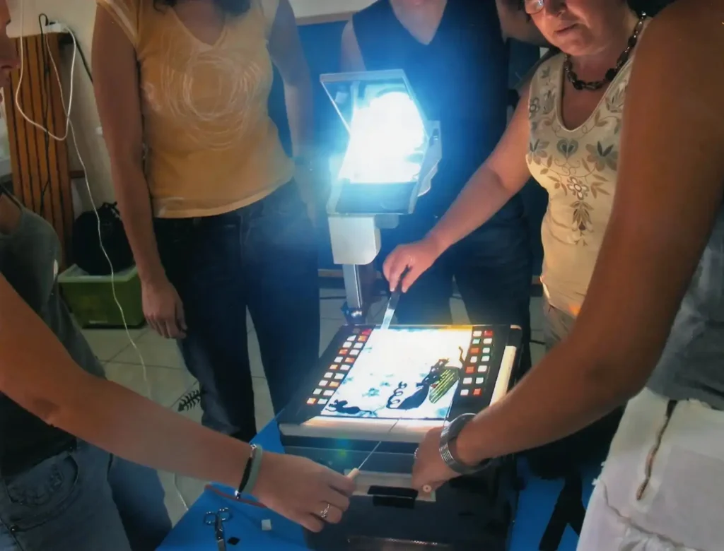 - Treball a partir del retroprojector de transparències. El retroprojector com a suport bàsic de la llum.