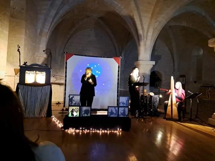 Un espectacle que combina ombres i música en directe. Recrea les figures del pessebre a partir de fragments del poema de Joan Alavedra i nadales tradicionals. La titellaire ombrista dóna vida a les escenes amb el teatre d’ombres, acompanyada de dos cantants, una arpa i percussions, creant un ambient emotiu i màgic per compartir amb família i amics.